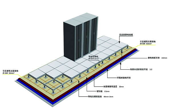 機房作為數(shù)據(jù)的處理和樞紐中心,成為信息系統(tǒng)中重點保護對象,而機房設備多,電源線、通訊線、數(shù)據(jù)線互相交叉,又極易遭受感應雷擊,所以機房防雷問題是系統(tǒng)集成中必須重點考慮的問題,為確保各智能化系統(tǒng)穩(wěn)定可靠運行及保障機房有良好的工作環(huán)境,設計須考慮做到技術先鋒、經濟合理、安全適用。除滿足《機房防雷設計規(guī)范》(GB50174-93)與《建筑物防雷設計規(guī)范》(GB50057-94),《建筑物電子信息系統(tǒng)防雷技術規(guī)范》(GB50343-2004)要求的同時,絕緣體的靜電電位不應大于1kv,機房內的導體必須與地面作可靠的聯(lián)接,不得有對地絕緣的孤立導體,接地電阻不應大于4Ω,同時還應符合現(xiàn)行國家有關標準規(guī)范的規(guī)定。