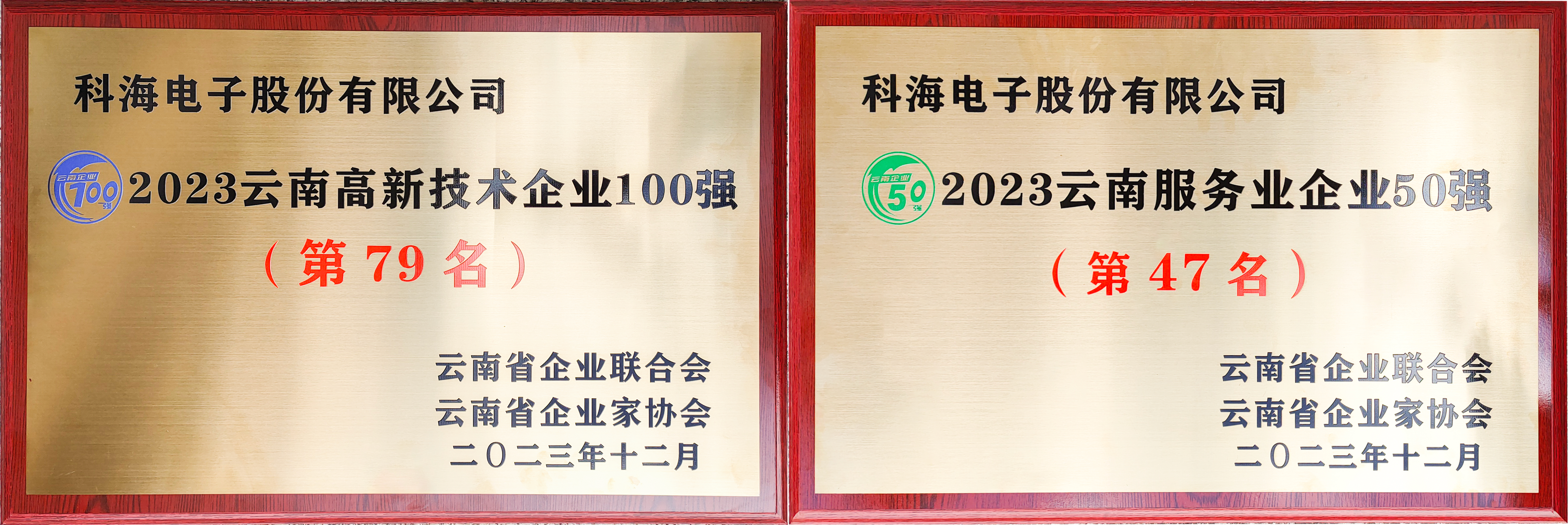 12月16日,由云南省企業(yè)聯(lián)合會、云南省企業(yè)家協(xié)會聯(lián)合舉辦的“2023云南企業(yè)100強發(fā)布會”在昆明市隆重舉行,會議對云南優(yōu)秀企業(yè)進行了榮譽表彰??坪k娮訕s登“2023云南高新技術(shù)企業(yè)100強”、“2023年云南服務(wù)業(yè)企業(yè)50強”榜單。