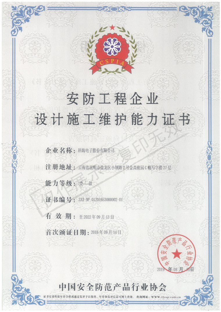 安防工程企業(yè)設(shè)計(jì)施工維護(hù)能力證書(shū)