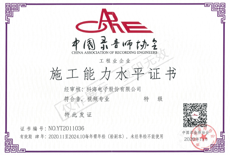 音、視頻工程企業(yè)資質(zhì)認證證書